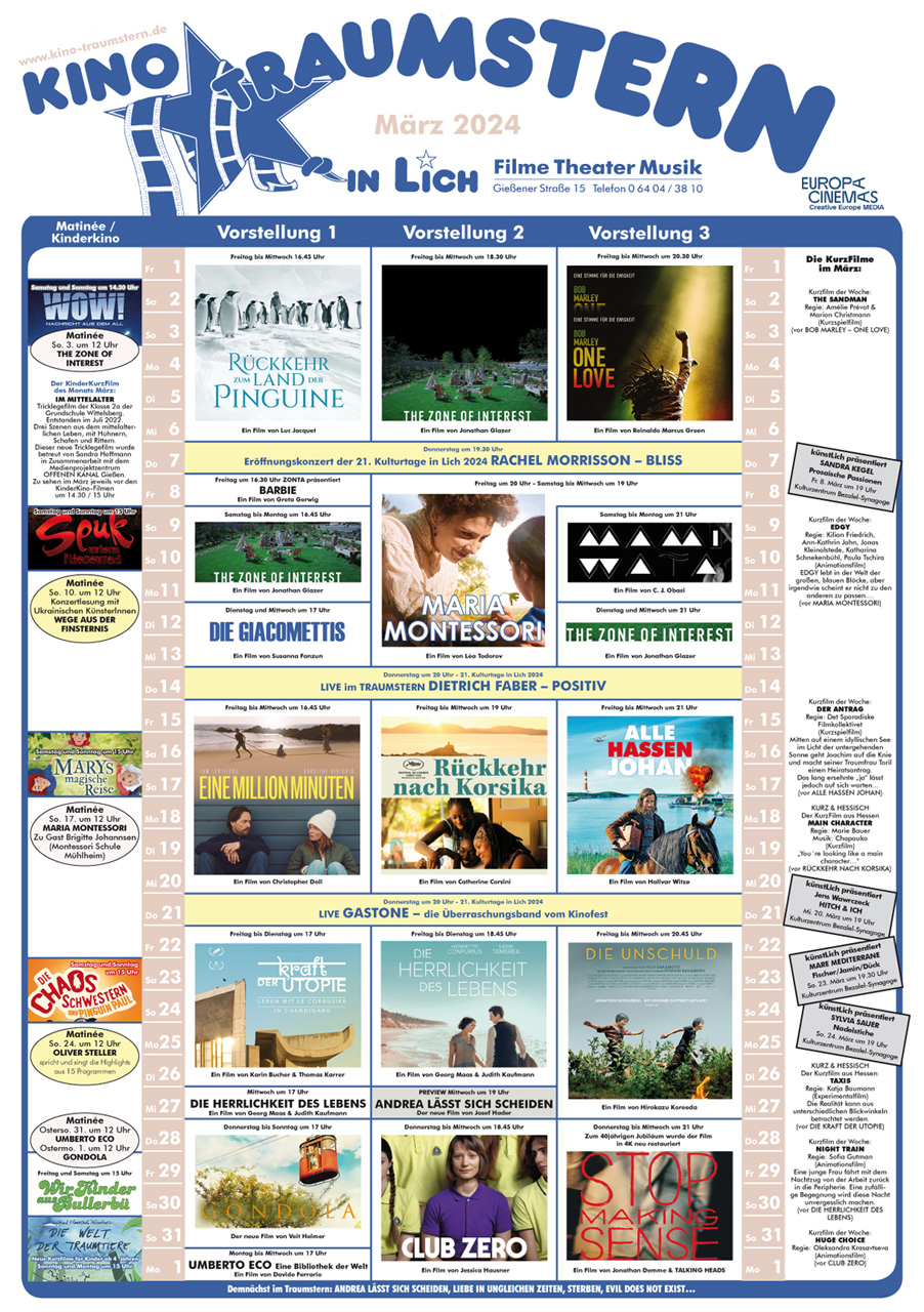 KinoTraumstern Programmübersicht für März 2024